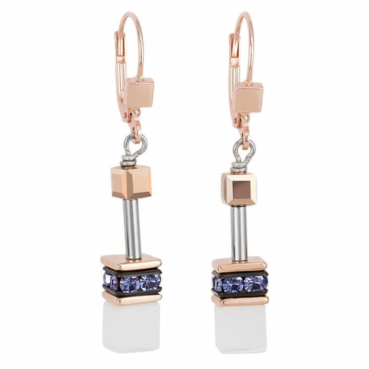 - Beautifully designed white purple earrings from the GeoCube collection from Coeur De Lion Jewellery.