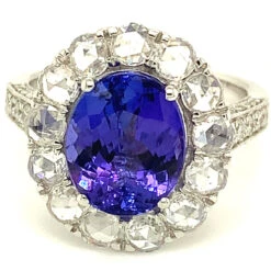 Fine Jewellery 18ct White Gold Tanzanite And Rose Cut Diamond Dress Ring CJ001