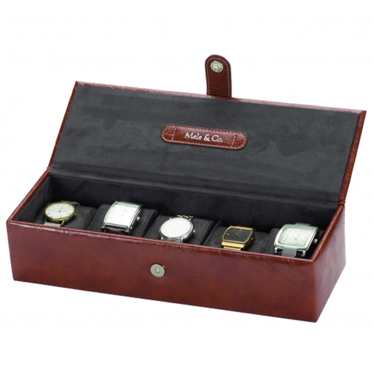 Mele & Co Raffles Brown Bonded Leather Watch Box For Men Fits 5 Watches 1558