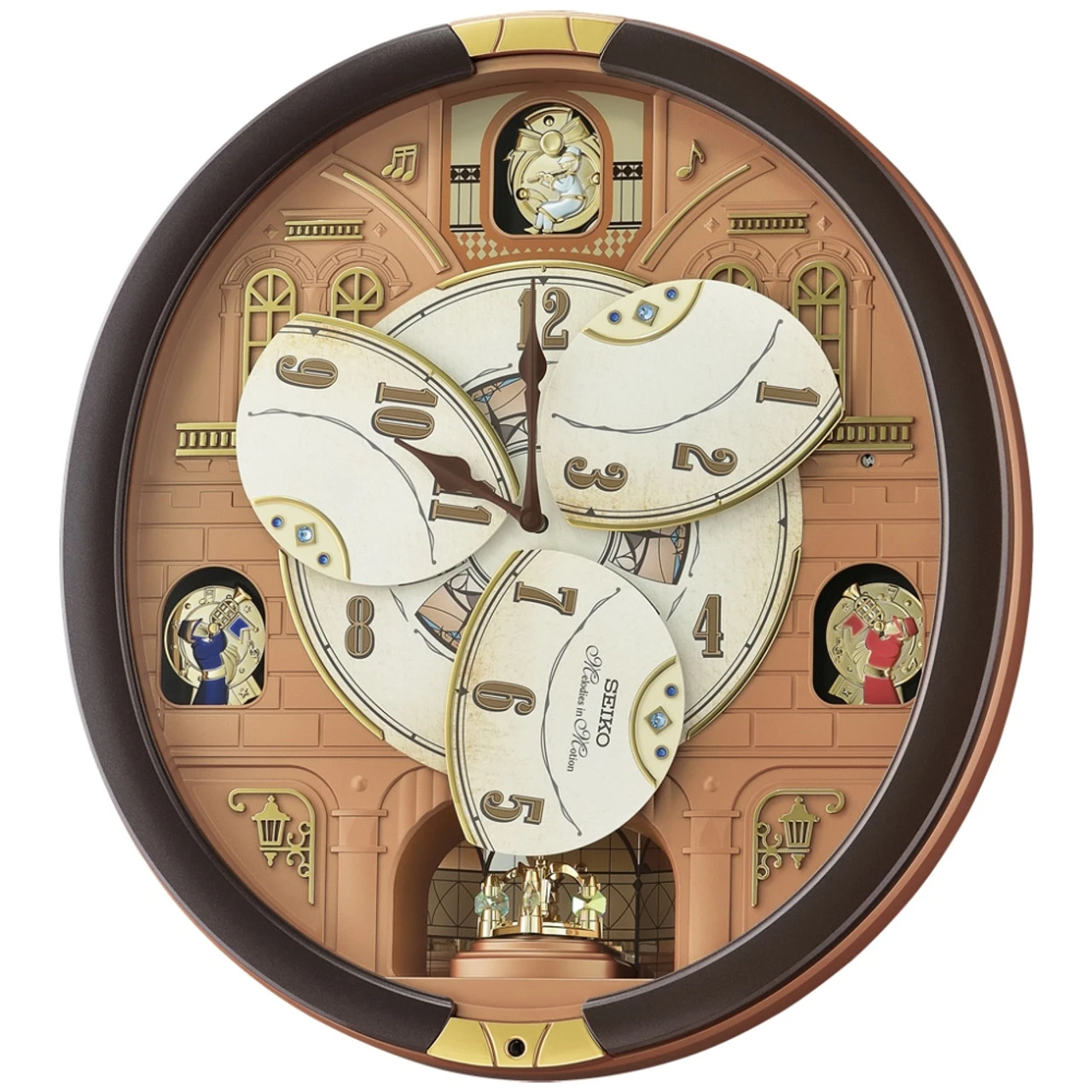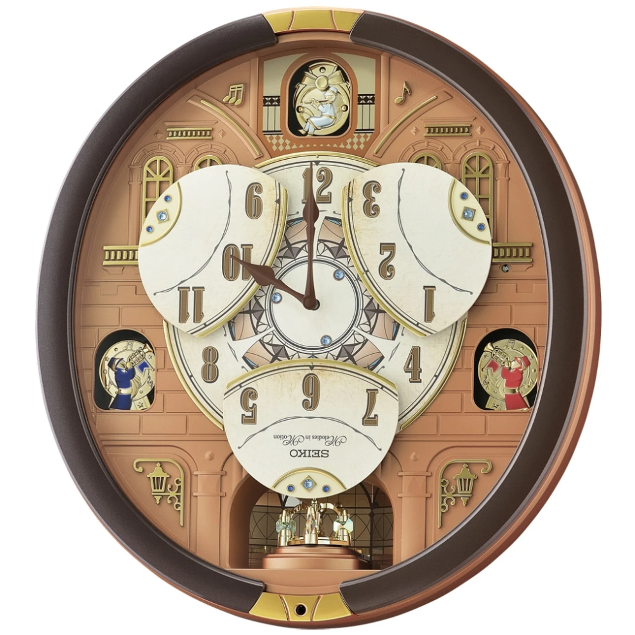 - On the hour dial opens and rotates while playing randomly one of 18 melodies with opening sequence.