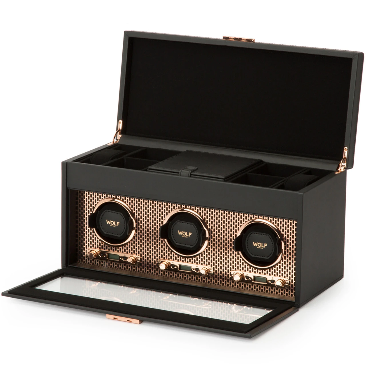 - A Wolf Axis Triple watch winder with a 5 piece watch storage.