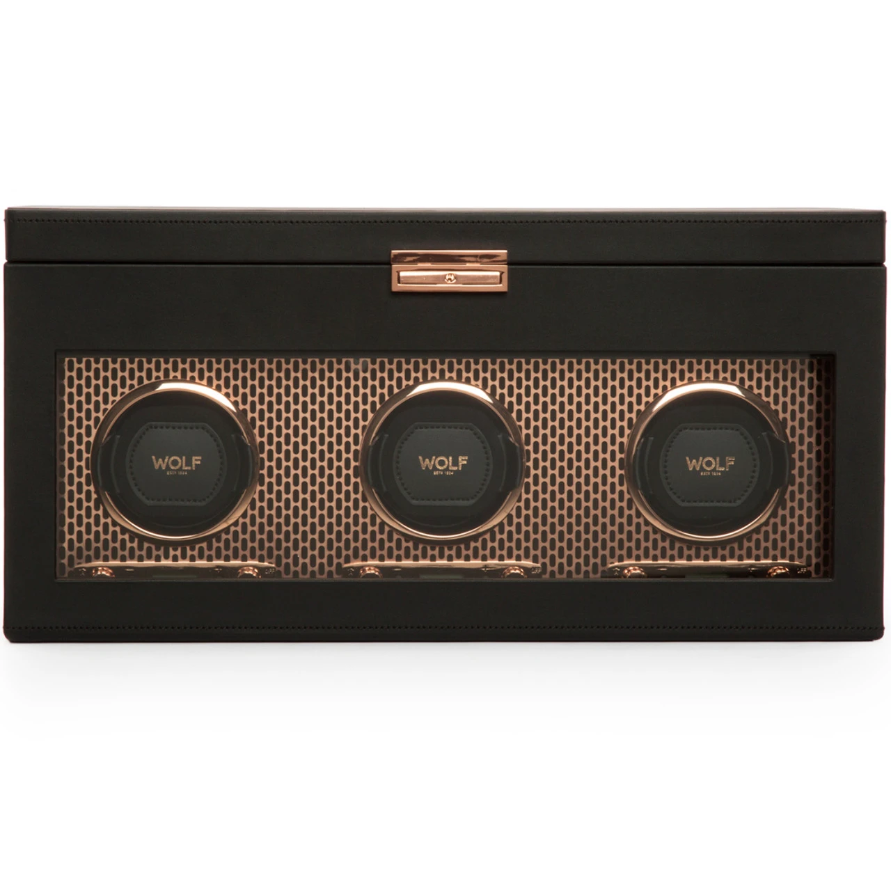 - This watch winder from Axis collection has Copper plated laser cut perforated steel melded with clean, sleek lines.