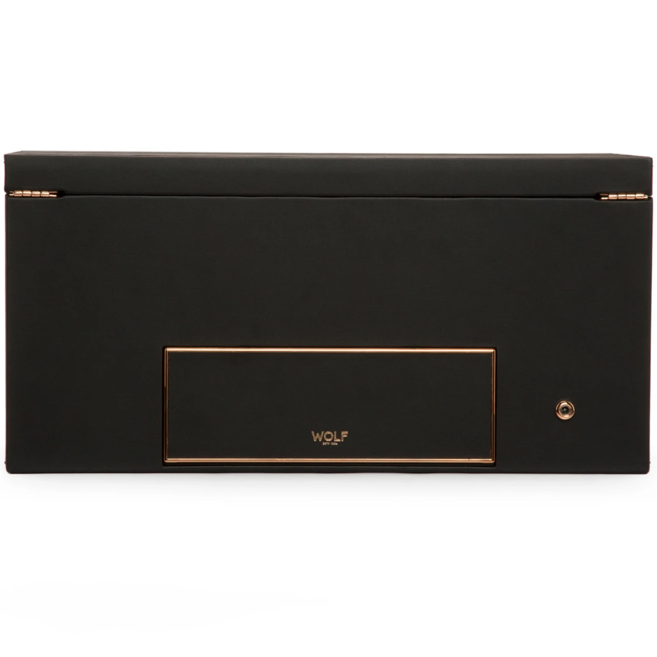 - It features a Microsuede interior, locking glass cover, backlit LCD and copper finished hardware.