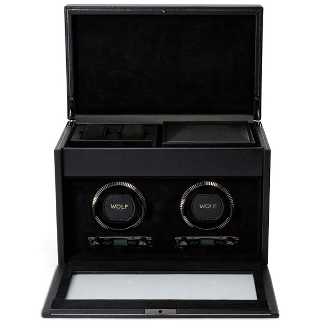 - Take your watches for a spin in the double watch winder with storage.